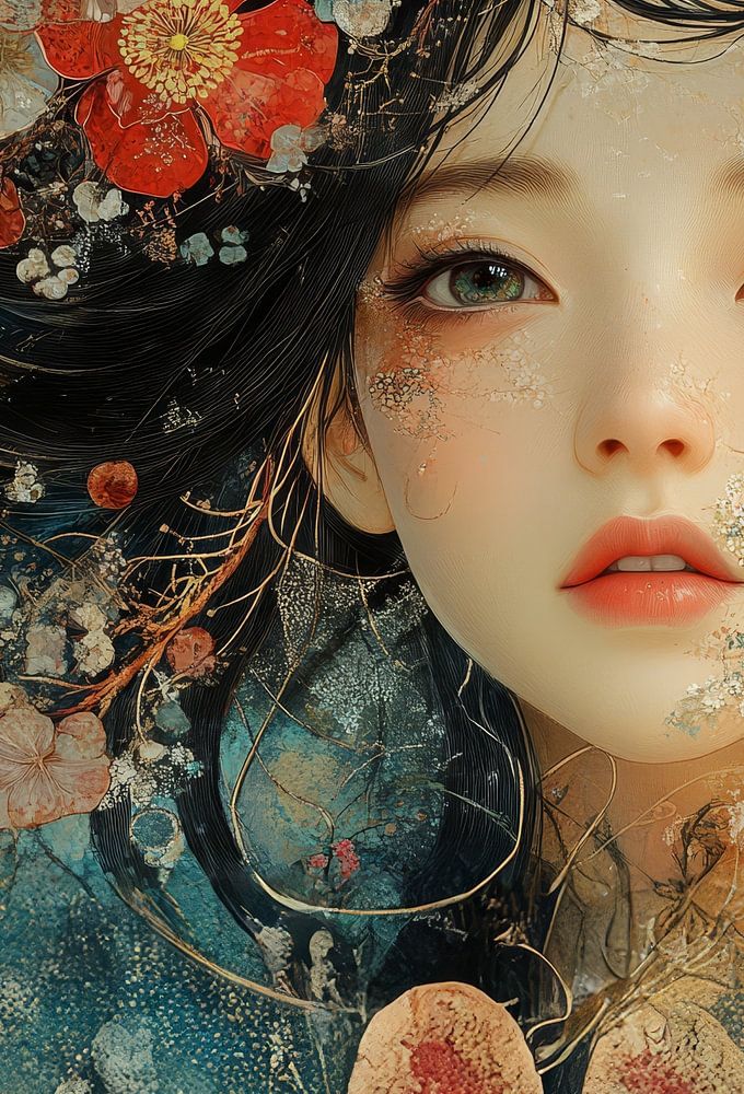 painterly digital fictional portrait of japanese woman in metropolitan style