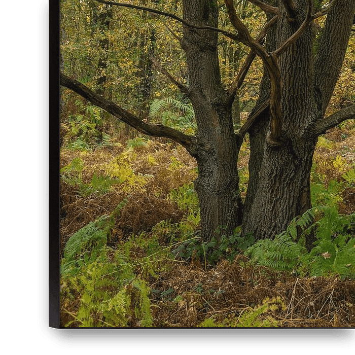 Autumn landscape forest with oak trees and ferns with autumn colours