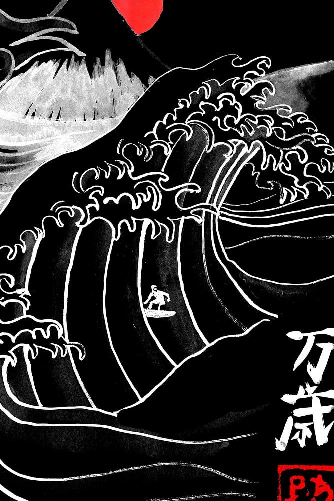 Buy this painting large wave manga by Péchane Sumie as a reproduction on canvas, ArtFrame, poster and wallpaper, printed on demand in high quality.