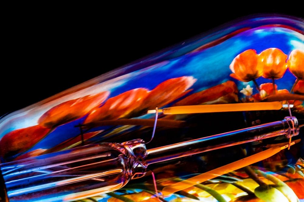 In short, the photo of a light bulb in which colours reflect is a tribute to the beauty of light and colour. It creates a visual spectacle that stimulates the imagination and evokes a sense of wonder. It reminds us how magical and enchanting the world can be when we notice the beauty around us.