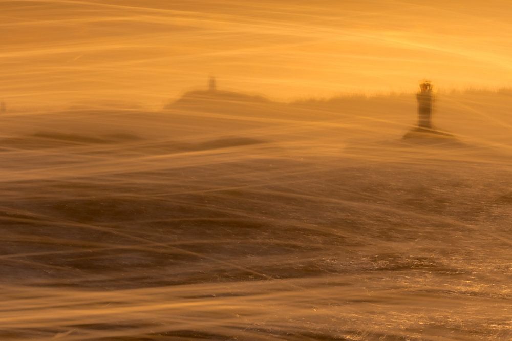 A small lighthouse in the last golden light of sunset. Rough waves due to strong winds. The technique used is long shutter speed and ICM, Intentional Camera Movement. The camera was deliberately moved while taking this picture, a brilliant technique I think. I put a calm movement in here, making the waves and the last sunlight stand out well. Despite the movement, the photo is also full of simplicity, a simple house and the lighthouse on a very small island in the sea.