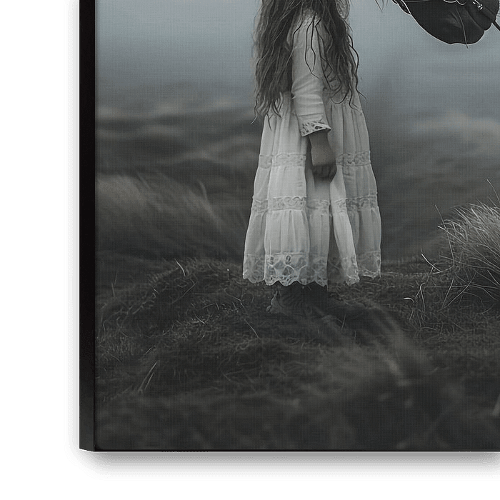 Buy this landscape artwork little girl with black horse by haroulita on canvas, ArtFrame, poster and wallpaper, printed on demand in high quality.