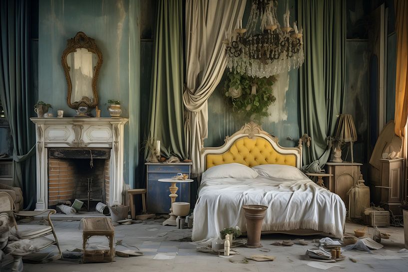 Buy this digital art artwork lost places bedroom by Heike Hultsch as a reproduction on canvas, ArtFrame, poster and wallpaper, printed on demand in high quality.