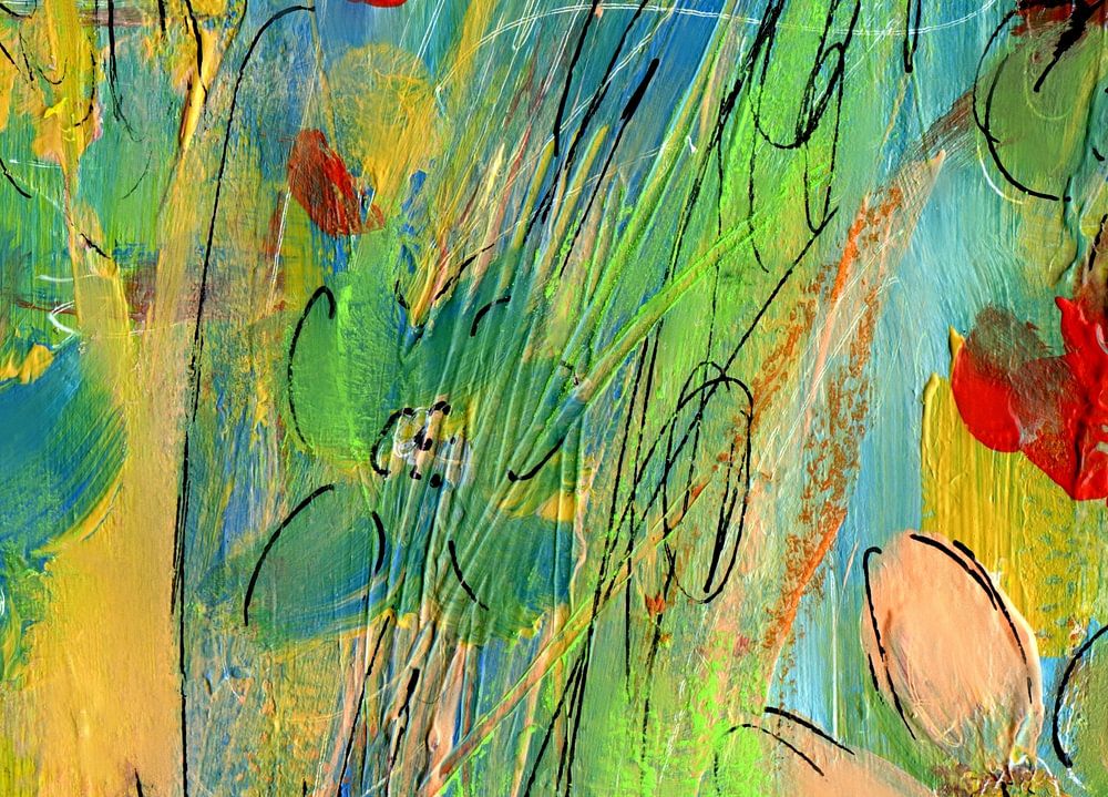 Flower picture with acrylic colors and graphic elements. The color green dominates. A cheerful good mood picture...