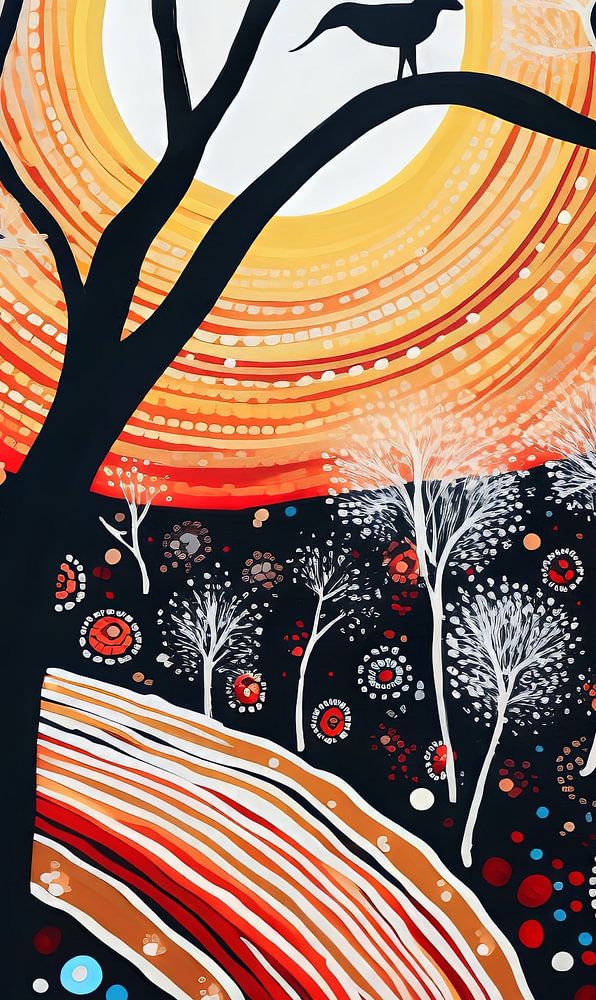 This captivating series of Australian Aboriginal-style art serves as a profound homage to the rich cultural tapestry and ancient storytelling traditions of Indigenous communities. Utilizing the iconic dot painting technique, each piece intricately weaves together a complex narrative that pays tribute to the Dreamtime— the mythical realm where ancestral spirits shape the world. The canvases burst with a kaleidoscope of earthy tones, evoking the rugged landscapes of the Australian outback, while intricate patterns and symbols invite viewers to delve deeper into the spiritual and cultural dimensions of the work. Rooted in a reverence for the land and its sacred history, this series offers not just visual delight but also an enriching, educational experience that bridges the gap between ancient wisdom and contemporary art.