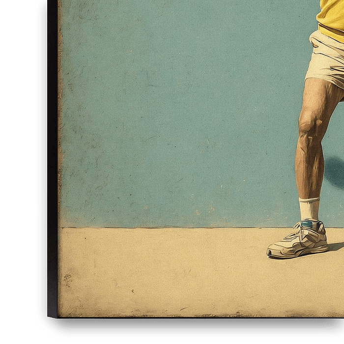 Buy this digital art artwork man with beard plays padel by Joost Berndes as a reproduction on canvas, ArtFrame, poster and wallpaper, printed on demand in high quality.