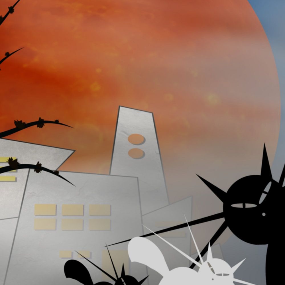 Buy this digital art artwork mooncats in their city by Isa Bild as a reproduction on canvas, ArtFrame, poster and wallpaper, printed on demand in high quality.