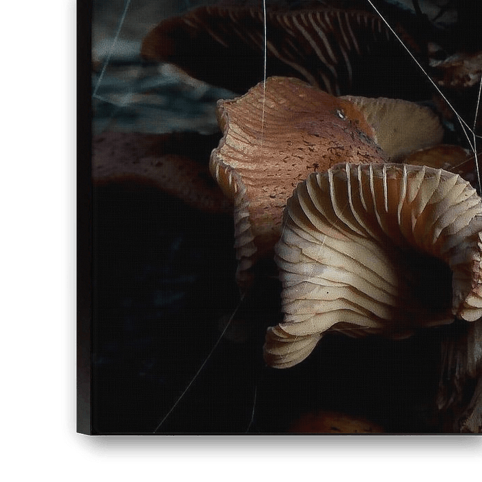 A group of mushrooms with a black background
