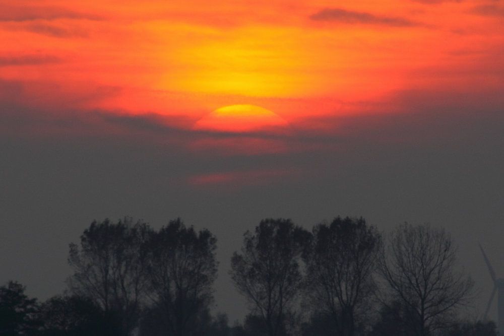 De ondergaande zon betoveren het Oost-Friese platteland.