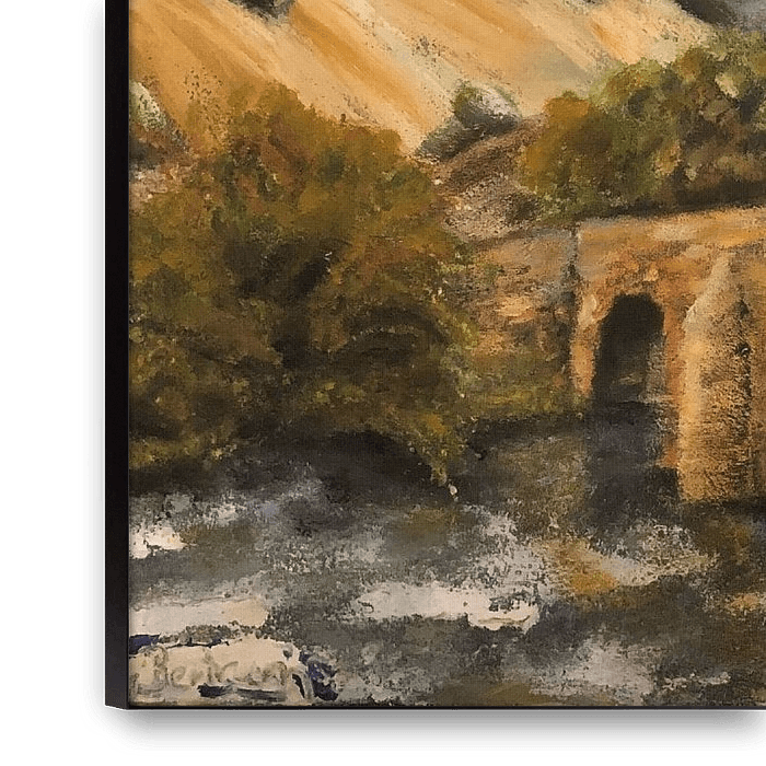 old bridge near Dernau Ahrtal built in 1717, badly damaged in the flood of 1804, rebuilt in 1806, the flood of the Ahr of 2021 it has survived as one of the very few bridges of the Ahr. Painting shows the situation around 1960