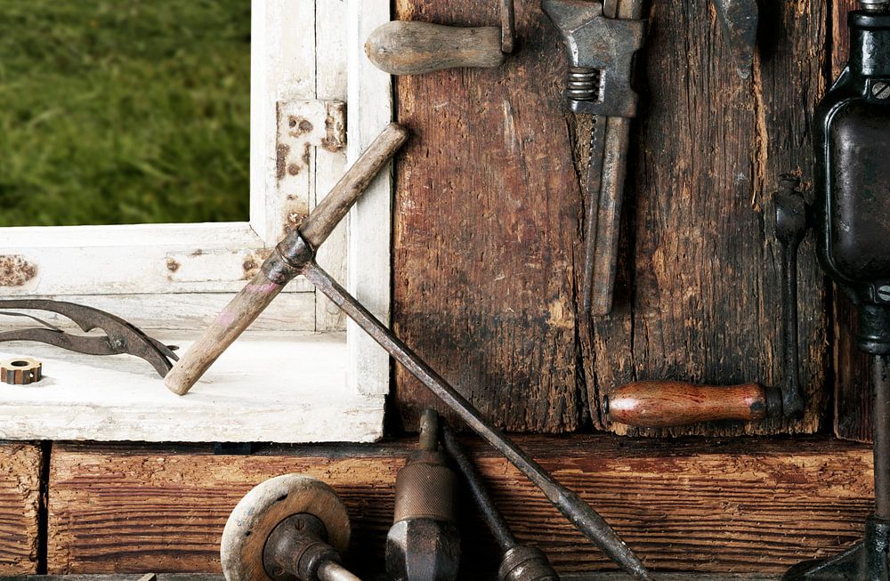 Buy the photo old tools on a workbench by Jürgen Wiesler on canvas, ArtFrame, poster and wallpaper, printed on demand in high quality.