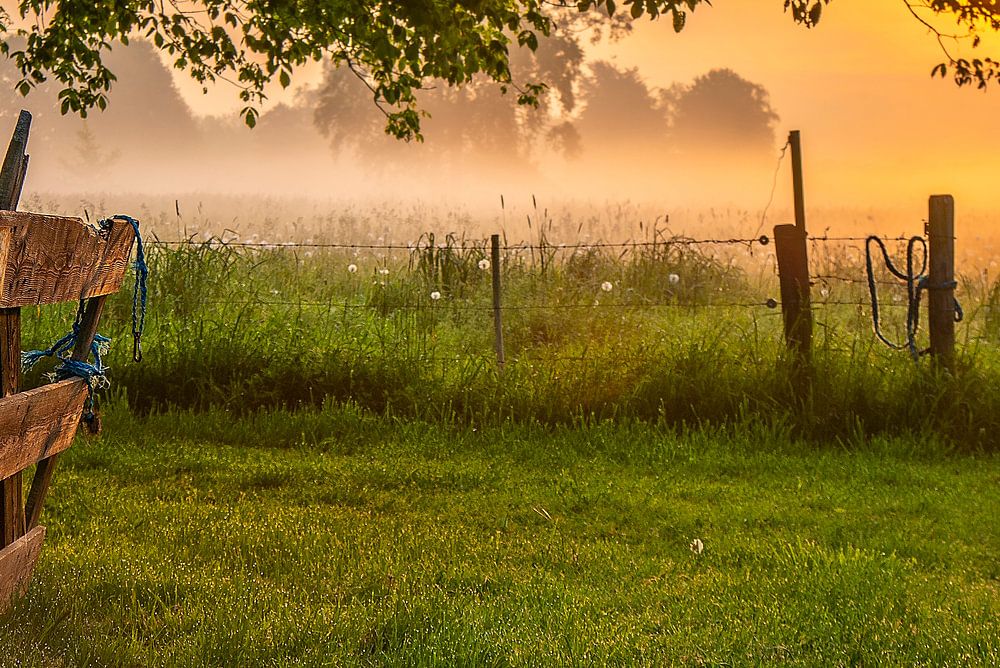 Buy this landscape artwork open gate lets the sun in by Sylvain Poel on canvas, ArtFrame, poster and wallpaper, printed on demand in high quality.