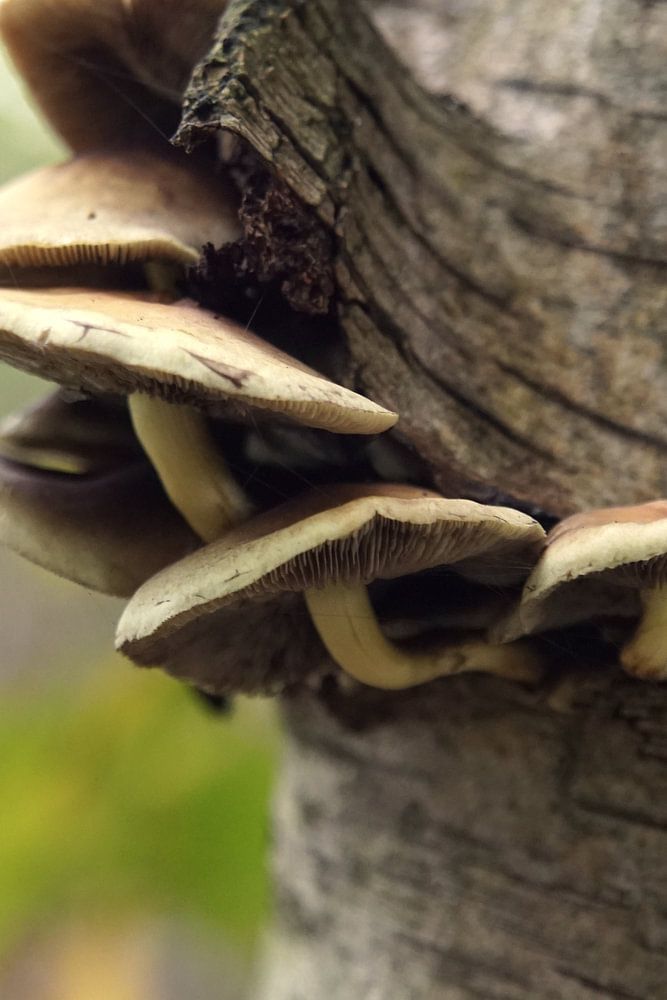 zo kwetsbaar als de paddenstoelen er ook uitzien, is het verbazingwekkend hoe ze die barst van de boom af weten te scheuren en naar buiten weten te komen... kronkelend met de steeltjes de hoedjes naar buiten duwend nieuwsgierig naar hun omgeving