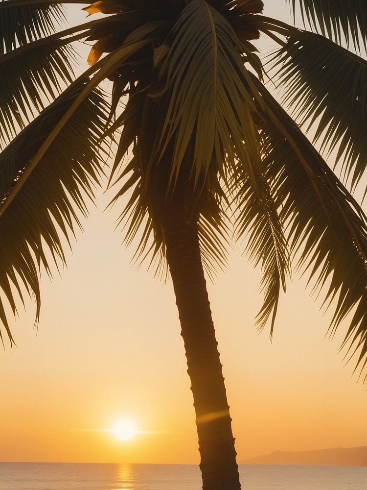 An image of a palm tree at the summer sunset vacation beach