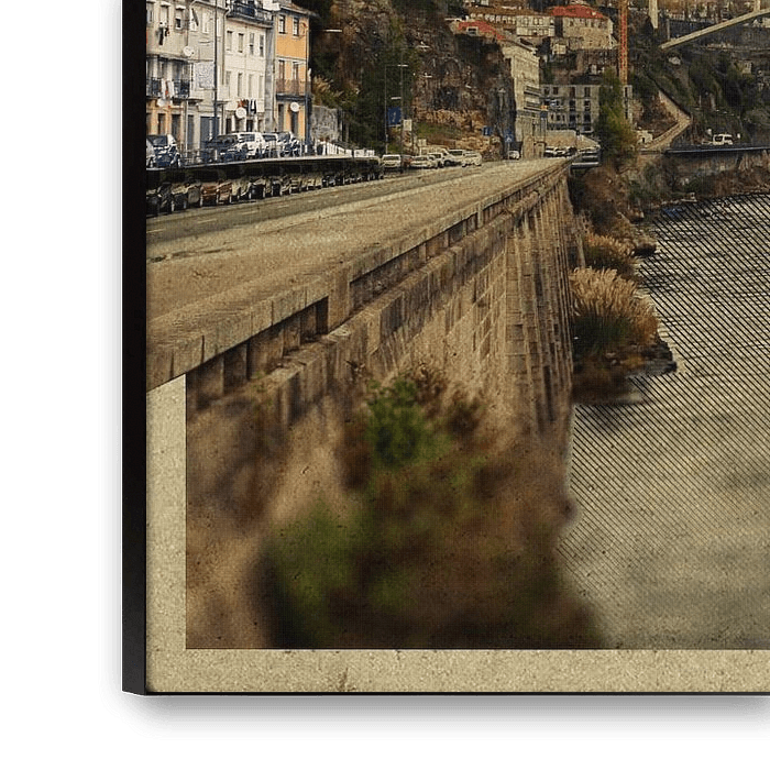 old retro postcard of the Douro river, Dom Luiz Bridge of Porto, Portugal