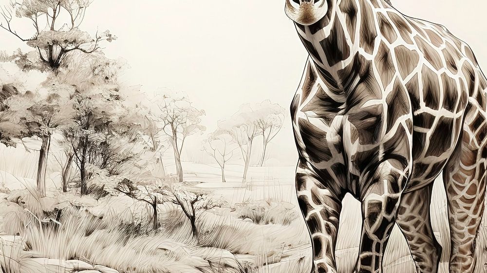 Buy this digital art artwork pen drawing of a giraffe by Gelissen Artworks as a reproduction on canvas, ArtFrame, poster and wallpaper, printed on demand in high quality.