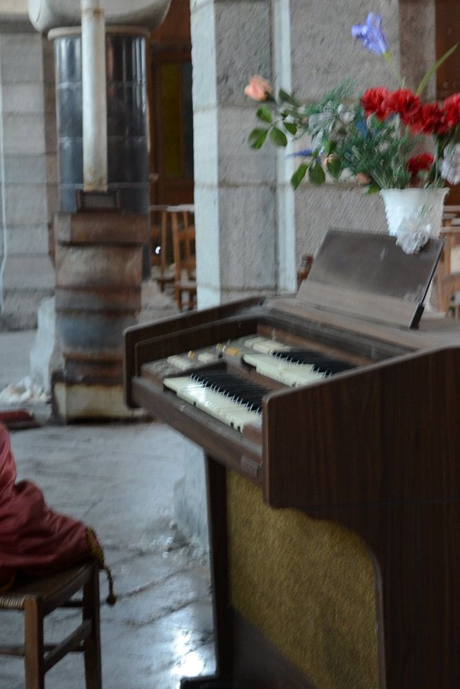 oude piano in een kerk