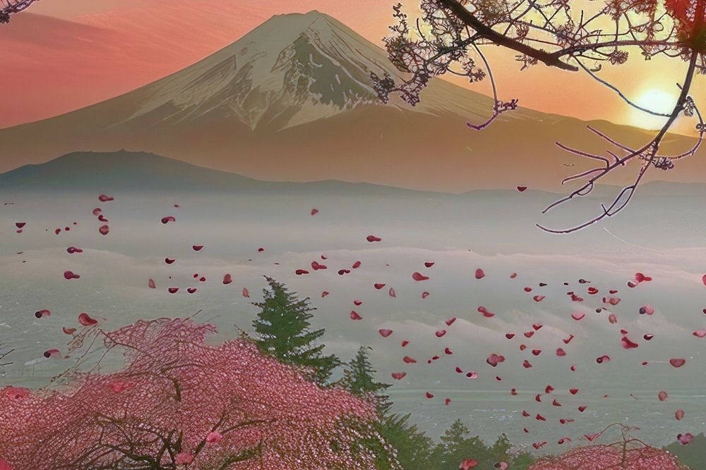 Digital painterly image of fictional persons or landscapes from Japan