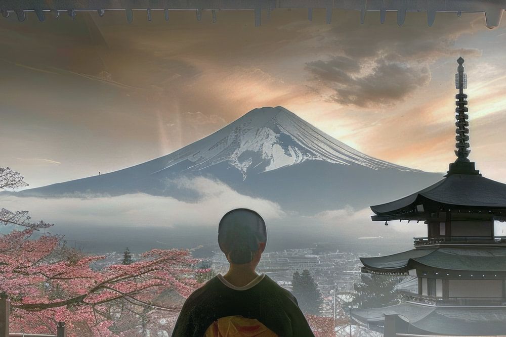 Digital painterly image of fictional persons or landscapes from Japan