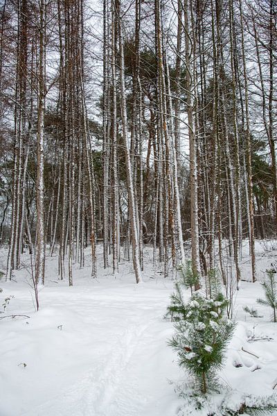 Winter is doing its best to cover the pine forest with snow. That's long overdue in Holland.