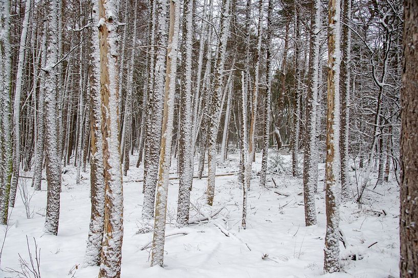 Winter is doing its best to cover the pine forest with snow. That's long overdue in Holland.