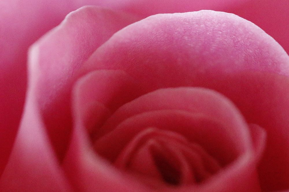 Closeup of a pink rose. Many lines with the heart in the middle.
