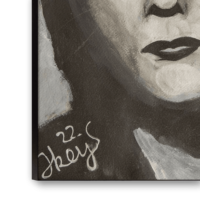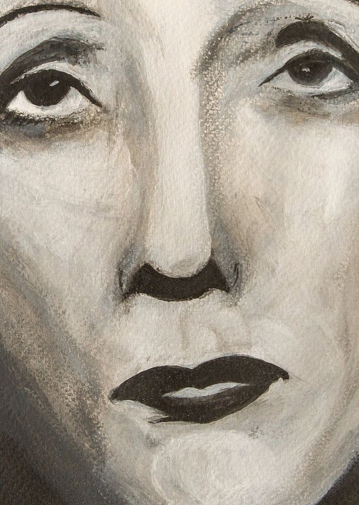This portrait of Edith Piaf was painted with acrylic paint on paper.