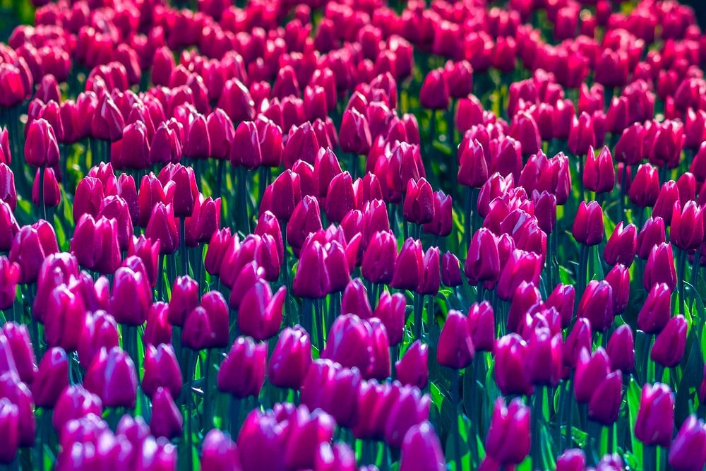 Tulip field along the Hazeweel in Oostwoud. Wednesday 7 April 2021 with ever changing and threatening skies.