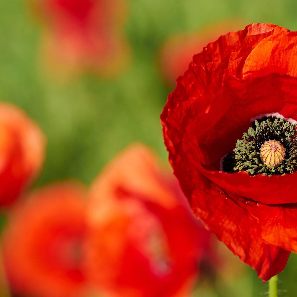 red flowering corn poppy on flower meadow in summer by Heiko Kueverling