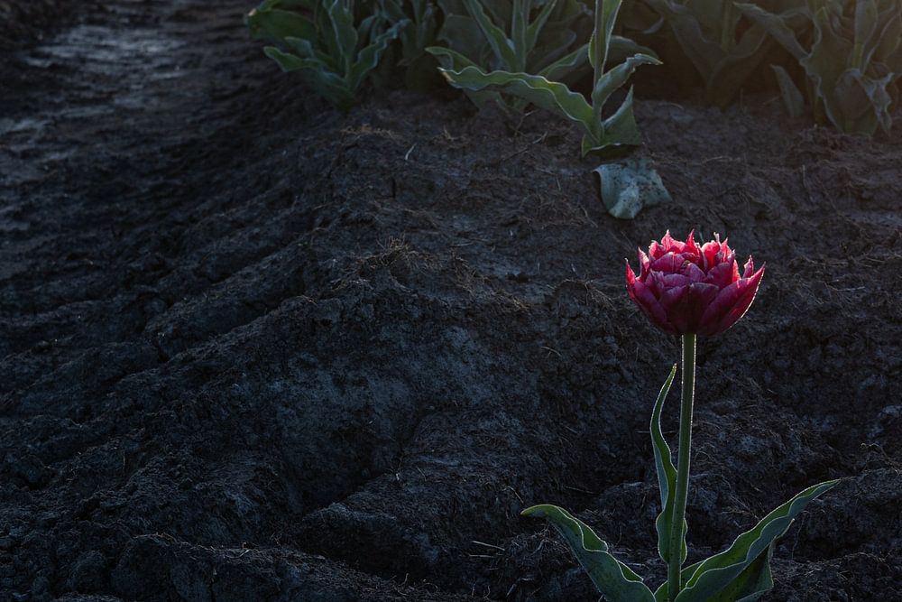 On 11 April 2025, the forecast for fog was good. It had been a cold night and the weather would be nice. This field on Kingspade in Aartswoud consists of many varieties and colours of tulips. That makes it interesting to photograph. Also because the church of Aartswoud can be included in the background.