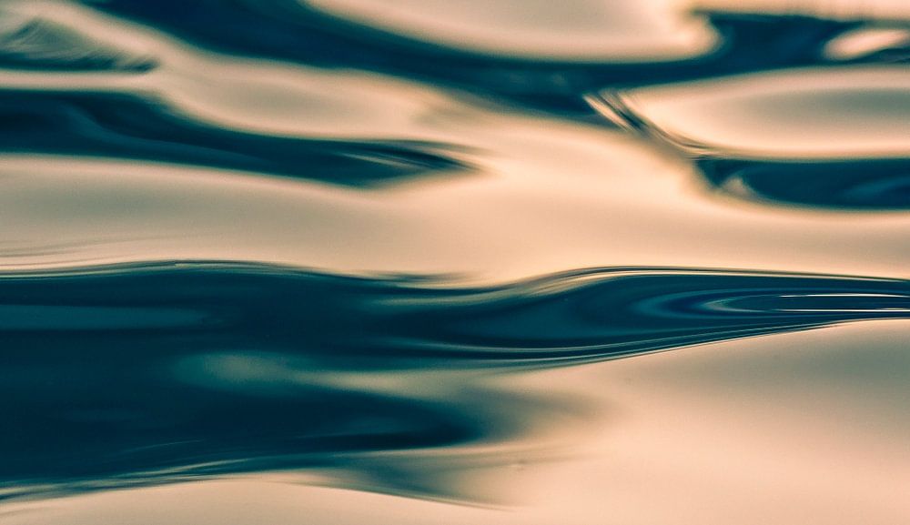 On a beautiful spring evening the sunlight reflects on the water. Warm colours rippling between the blues.