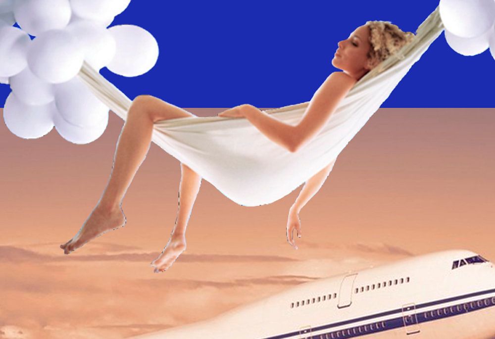 Photo montage : femme dans le hamac aux rêves de ses vacances.