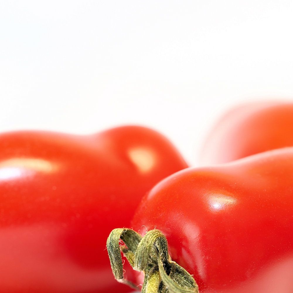ripe Roma tomatoes Solanum lycopersicum with white background for healthy food in the kitchen