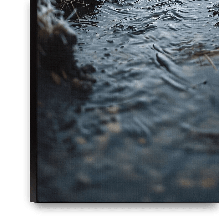 Immerse yourself in the serene beauty of nature with this enchanting artwork. A babbling brook meanders through a landscape surrounded by lush greenery and soft vegetation. The crystal-clear water reflects light in an enchanting way, creating a sense of tranquillity and harmony. This artwork is a perfect addition to any space where you…