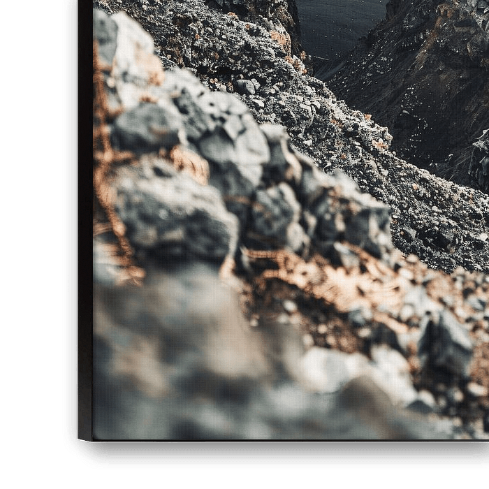 This breathtaking work of art captures the raw beauty of a volcanic landscape. The majestic volcano dominates the horizon, while the foreground offers a dramatic contrast with its jagged rock formations and solidified lava flows. The subtle hues of grey, brown and beige enhance the sense of timelessness and the power of nature. A masterpiece that evokes a sense of awe and wonder.