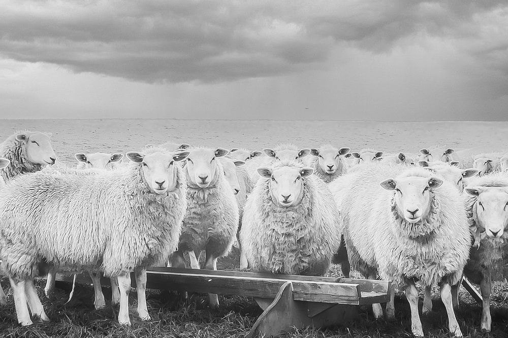 Buy this landscape artwork sheep in black and white by M. B. fotografie on canvas, ArtFrame, poster and wallpaper, printed on demand in high quality.