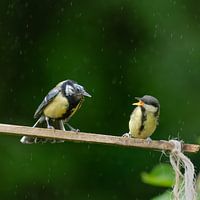 Young tit begging for a morsel, hard-working tit parents literally work themselves to death to feed the young, as an unsuspecting observer, the devilish bird's head startles you.