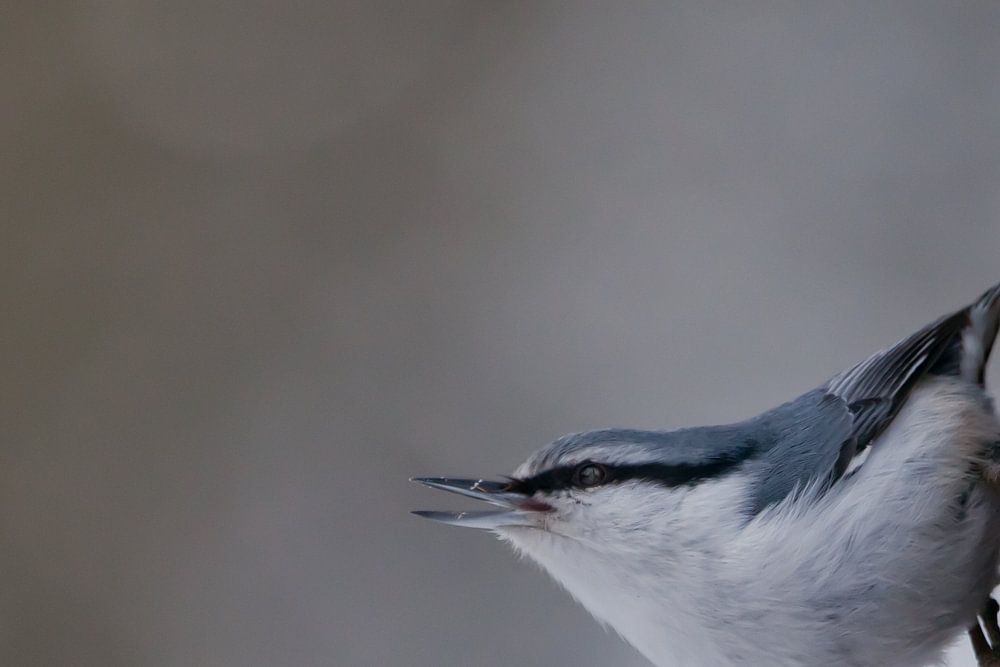 small bird nuthatch on the bark cheerfully looks by Michael Semenov