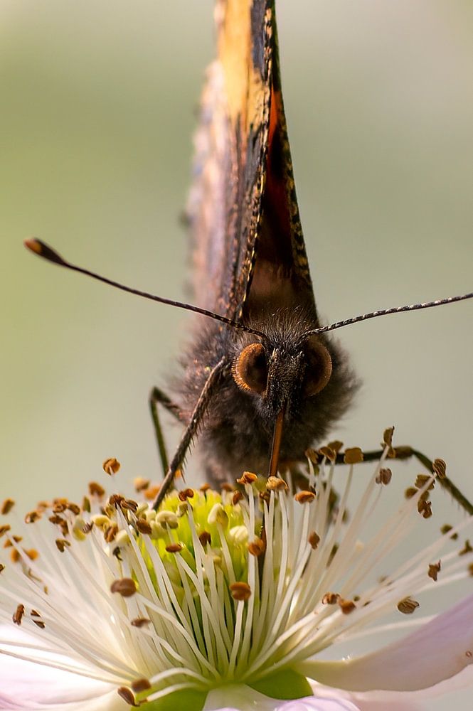 small tortoiseshell butterfly on a blackberry flower by Mario Plechaty Photography