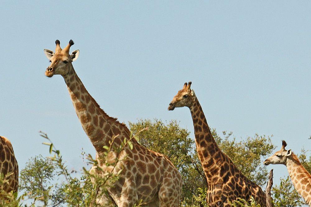 Four giraffes lined up according their size in Kruger National Park, South Africa.