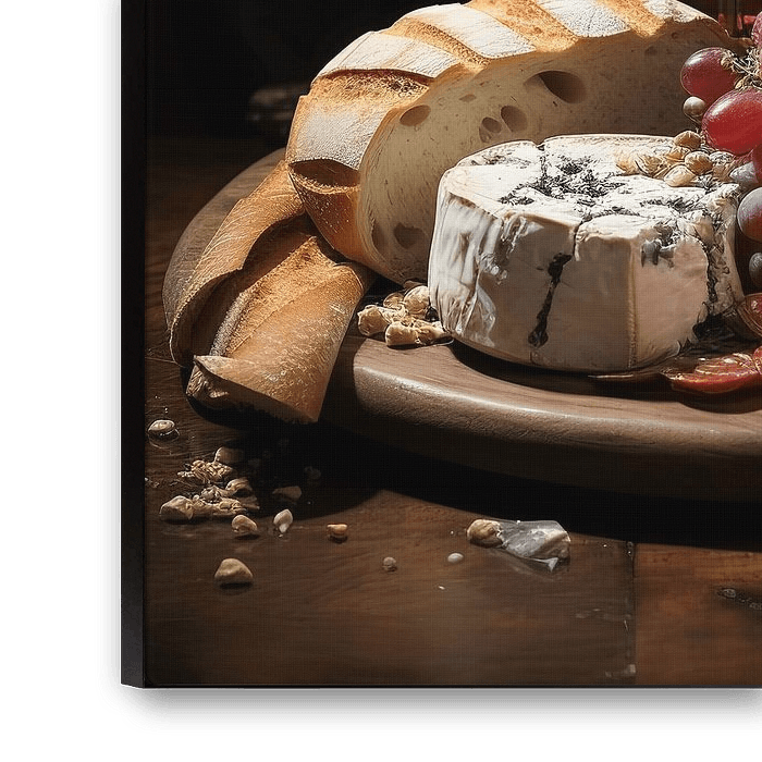De compositie was compleet, en het tafereel straalde een uitnodigende en rustgevende sfeer uit. De wijn, kaas en brood waren niet alleen smakelijk om te eten, maar vormden ook een visueel feest voor het oog. De rijke kleuren van de wijn, de verschillende texturen van de kazen en het knapperige brood belichaamden de essentie van het Franse platteland.