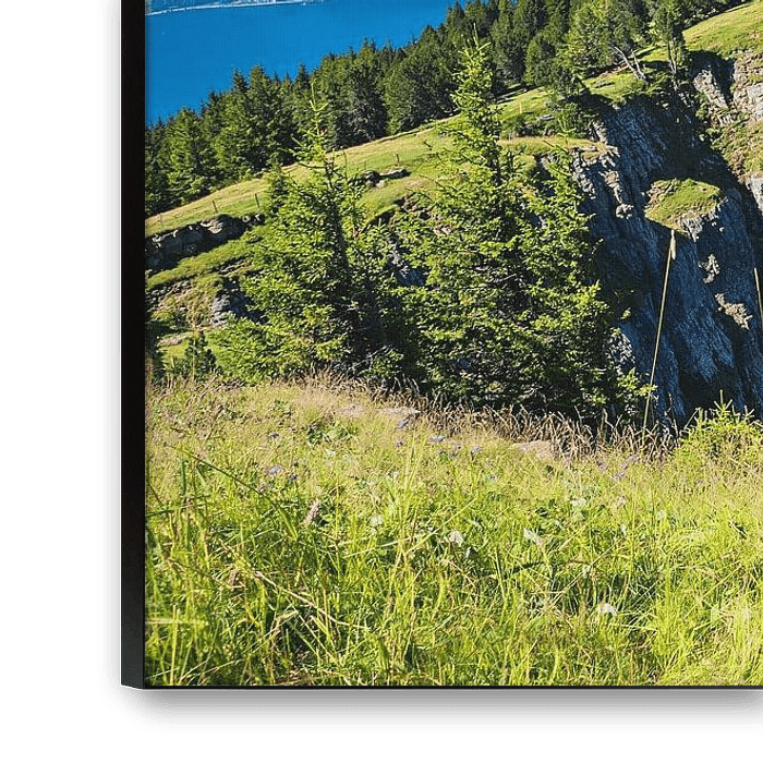 Buy this landscape artwork stunning view high above lake Thun, lookout from Niederhorn by SusaZoom on canvas, ArtFrame, poster and wallpaper, printed on demand in high quality.