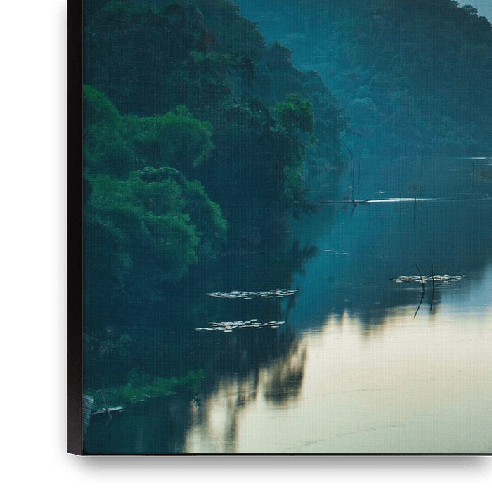 Colorful sunset over a lake in the jungle of Vietnam