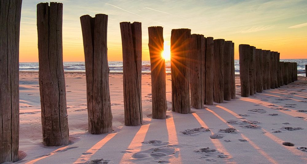 Old breakwaters between Bergen aan zee and Hargen, near De Kerf. You can only get here by bicycle or walk half an hour from bergen aan zee. This photo used a small aperture to get the star effect in the sun.