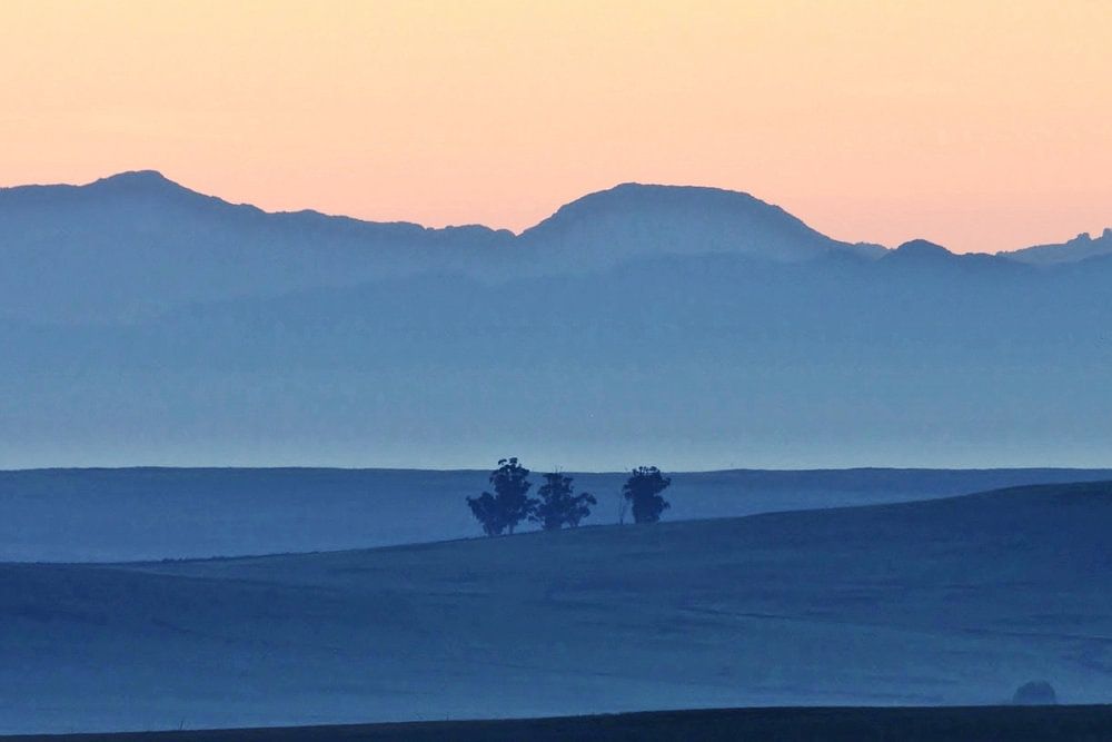Landscape with the Ceres mountains and fields at sunrise in the blue light