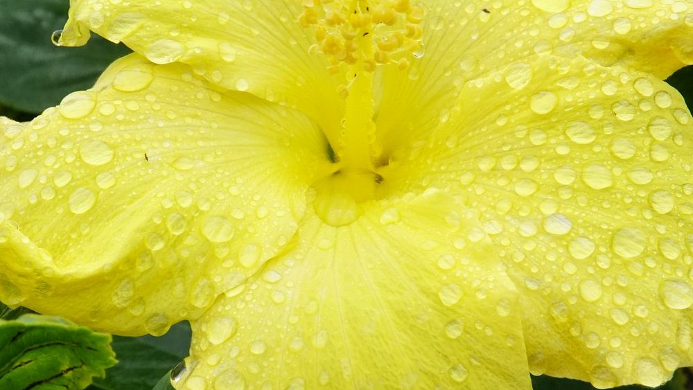 A tropical flower in Hawaii in the middle of the summer. After a heavy rain you can see the flower with beautiful raindrops.
