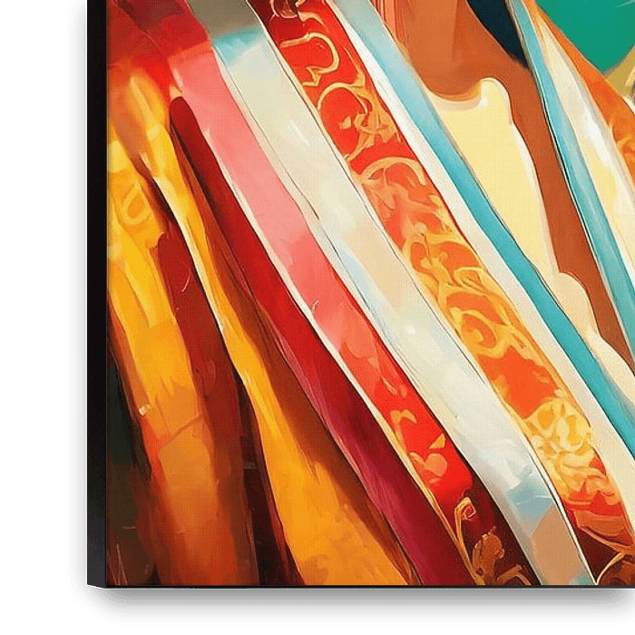 Your chosen art on canvas, stretched in an aluminum frame. Quick and easy to change for a fresh look and exactly as you want it.