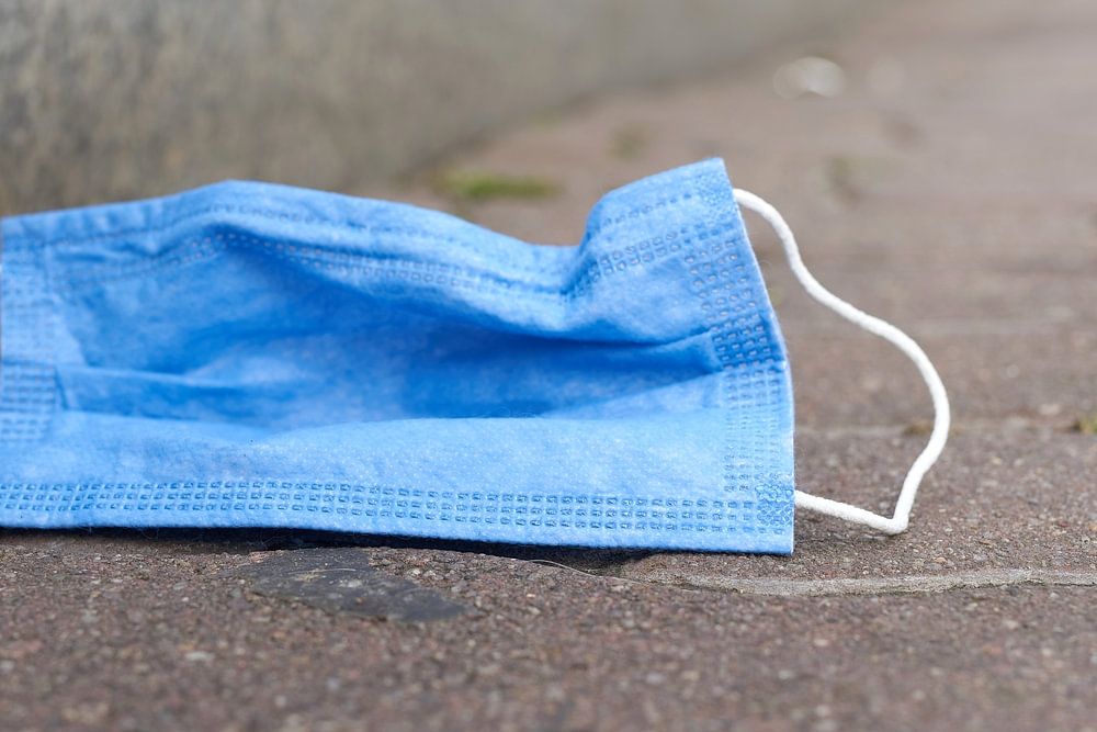 discarded mouth-nose protection on a path at Alexanderplatz in downtown Berlin