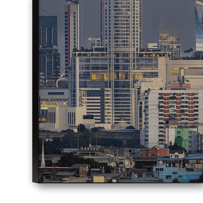 A warm play of colours enchants the scenery, from delicate shades of pink and orange to deep purple nuances. The sky becomes a canvas on which the stories of the city are told in fascinating colours. In this peaceful atmosphere, the dynamic energy of Bangkok is revealed in a way that is as calm as it is impressive. It is as if the skyscrapers themselves are whispering stories as they rise majestically into the evening sky.