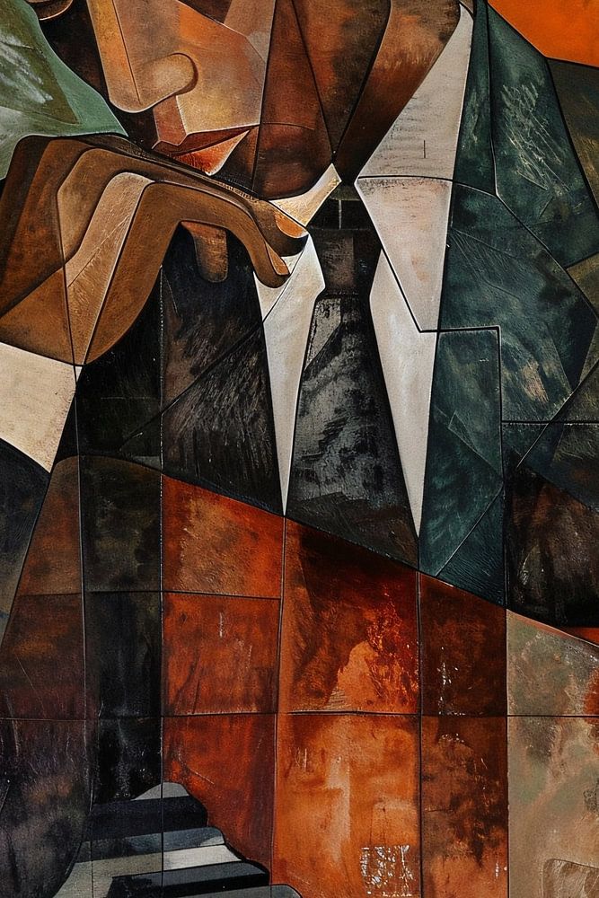 This unique artwork captures the essence of musical introspection in an abstract and cubist style. The painting shows a man in deep concentration as he bends over a piano, caught up in the musical notes and his own thoughts. The geometric shapes and warm colour combinations of brown, orange and grey create an intriguing visual experience that feels both timeless and modern. This painting would be an excellent addition to any space where an atmosphere of calm and contemplation is desired, such as an office or bedroom. It is a conversation piece that exudes a love of not only music but also art, perfect for the art lover who loves works that contain depth and meaning.